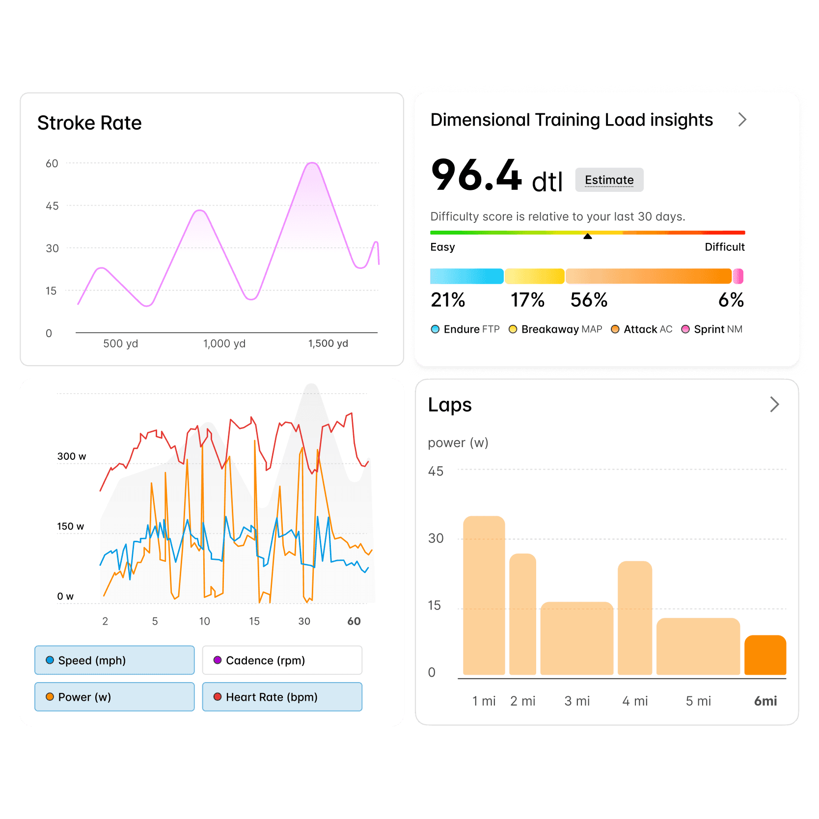 I redesigned the recap layer to feel faster, cleaner, and easier to understand. The new structure emphasized top-line metrics first, giving users a concise summary of the workout before introducing deeper views. This created a more legible entry point across user types and gave the page a stronger narrative flow.